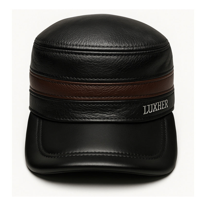 Gorro Jockey De Cuero Genuino Lujo Luxher Mod. Moscú Color Negro Talla 55-60 Cm Ajustable