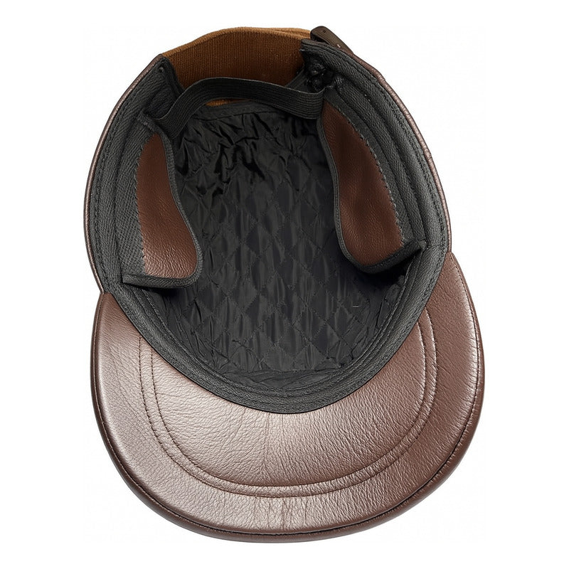 Gorro Jockey De Cuero Genuino Lujo Luxher Mod. Moscú Color Marrón Talla 55-60 Cm Ajustable