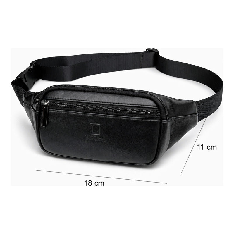 Banano Riñonera De Cuero Genuino Luxher Unisex Mod. Caoba Color Negro Diseño De La Tela Liso