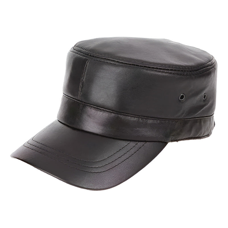 Gorra Jockey Cuero Genuino Piel De Oveja Mod. Side Color Negro Talla 56-61 (ajustable)