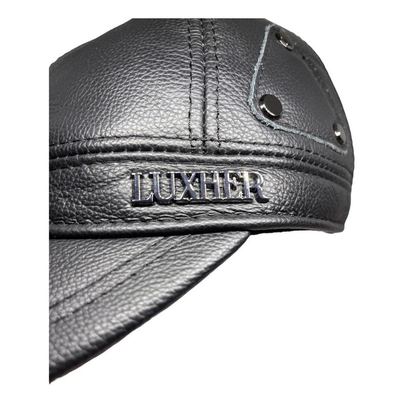 Gorro Jockey De Cuero Genuino Lujo Luxher Mod. Oslo Color Negro Talla 55-60 Cm Ajustable