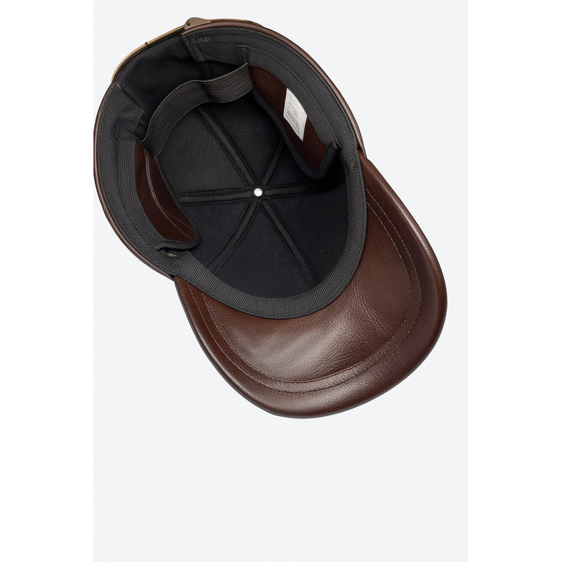Gorra Jockey Cuero Genuino Lujo Luxher Militar Mod. Zúrich Color Marrón Talla 55-60 Cm Ajustable