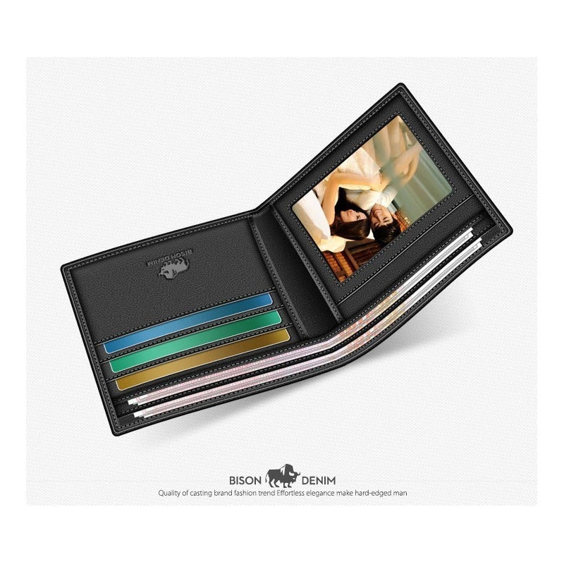 Billetera cuero genuino lujo Bisom Denim La calidad y autenticidad de la materia prima de los productos Bison Denim hacen que sea un regalo de primera calidad, ofreciendo una elegancia y una durabilidad incomparable. Dada su fabricación con materiales genuinos, hace de ella un producto fiel y confiable, que combina la sencillez y la formalidad. Especificaciones Marca: Bisom Denim Material exterior: Cuero de vaca genuino Material interior: Poliéster Dimensiones: 11.4 cm x 10.9 cm x 1.1 cm Compartimentos: múltiples ranuras para tarjetas, 2 ranuras para billetes, porta fotos, compartimentos internos múltiples usos Tipo de cierre: Manual Estilo: Moda de lujo, casual **INCLUYE CAJA DE PRESENTACIÓN DE LA MARCA** **Envío a todo Chile** ***SI POSEE ALGUNA DUDA O CONSULTA, NO DUDE EN ESCRIBIRNOS, SU SOLICITUD SERA ATENDIDA A LA BREVEDAD***