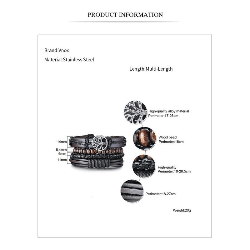 Pulsera de cuero ajustable unisex Arbol de la vida Pulsera inspirada en diseños vintage, fabricada con altos estándares de calidad y perfección, que harán lucir tus brazos a la moda y siempre elegante, sin duda, un accesorio que hará que tu apariencia luzca más sobria e interesante. Especificaciones Marca: VNOX Material: Cuero – acero inoxidable – madera Perímetro: 18 cm – 27 cm Estilo: Retro, vintage, elegante **Libre de plomo y niquel – Anti alérgico** **Pulseras ajustables** **Envíos a todo Chile** ***SI POSEE ALGUNA DUDA O CONSULTA, NO DUDE EN ESCRIBIRNOS, SU SOLICITUD SERA ATENDIDA A LA BREVEDAD***