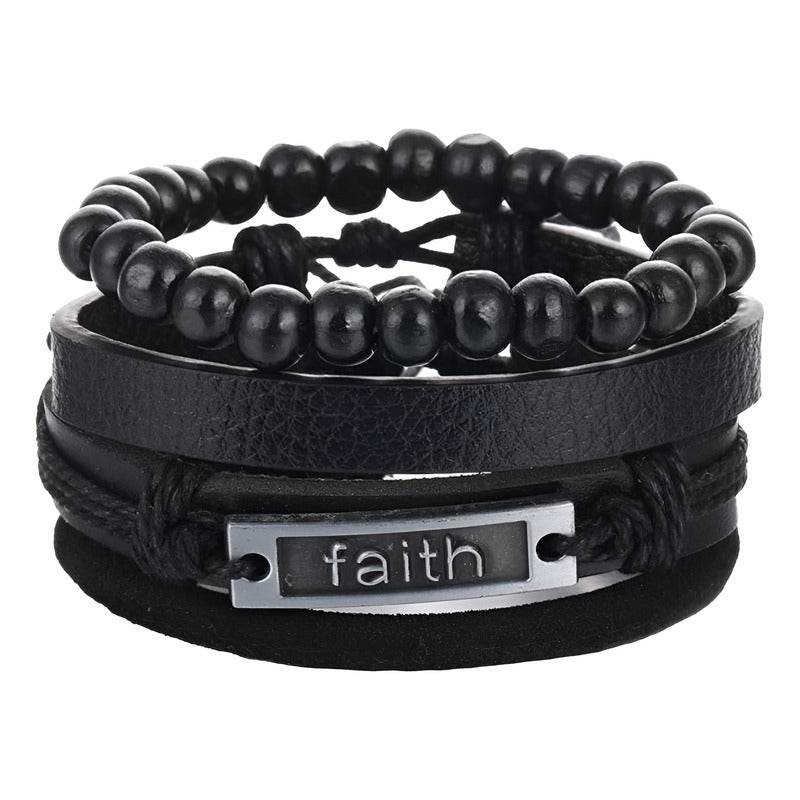 Pulsera De Cuero Ajustable Unisex Modelo Faith