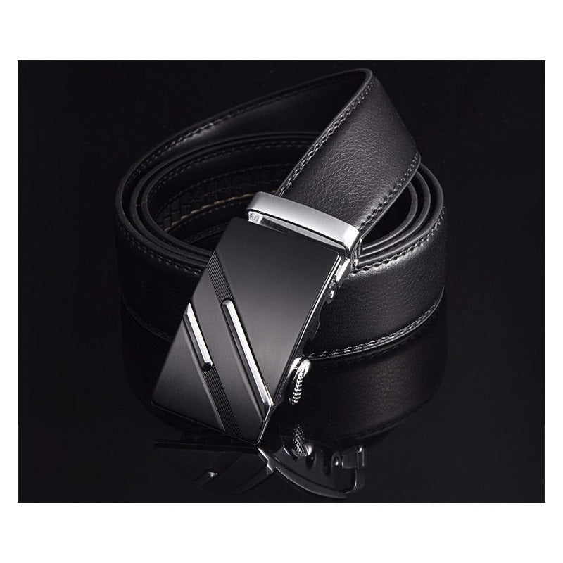 Cinturón Cuero Hebilla Automática Ajustable Lfmb Mod. Líneas