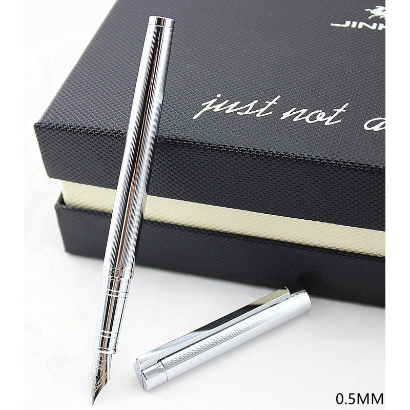 Pluma estilográfica Jinhao de lujo elegante mod. Office Los finos acabados y la elegante presentación de esta pluma, harán que su escritura demuestre una firmeza incomparable y una distinguida presentación. Sin duda, un regalo para destacar la nobleza y elegancia del portador. Especificaciones Material pluma: Metal Material plumín: Iraurita Medida plumín: 0.5mm Estilo: Oficina – elegante – Lujo **Sistema de llenado: Émbolo (pistón que al sumergir la pluma en un frasco de tinta y girarlo, se va rellenando) ** **INCLUYE CAJA DE PRESENTACIÓN** **NO INCLUYE TINTA** **Envíos a todo Chile** ***SI POSEE ALGUNA DUDA O CONSULTA, NO DUDE EN ESCRIBIRNOS, SU SOLICITUD SERA ATENDIDA A LA BREVEDAD***